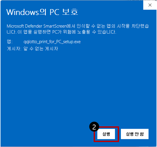 ① 아래 링크로 다운로드하여 큐큐로또 PC용 프로그램 설치