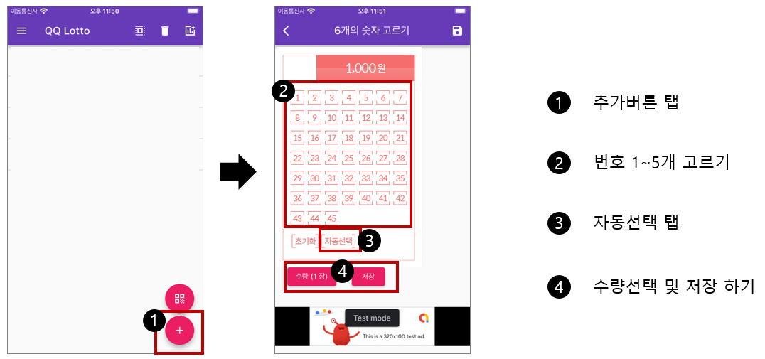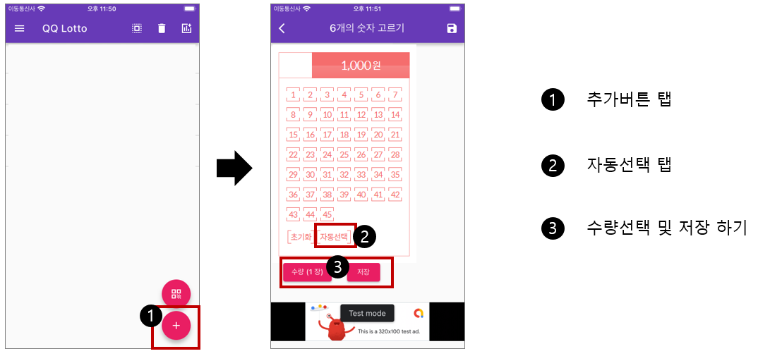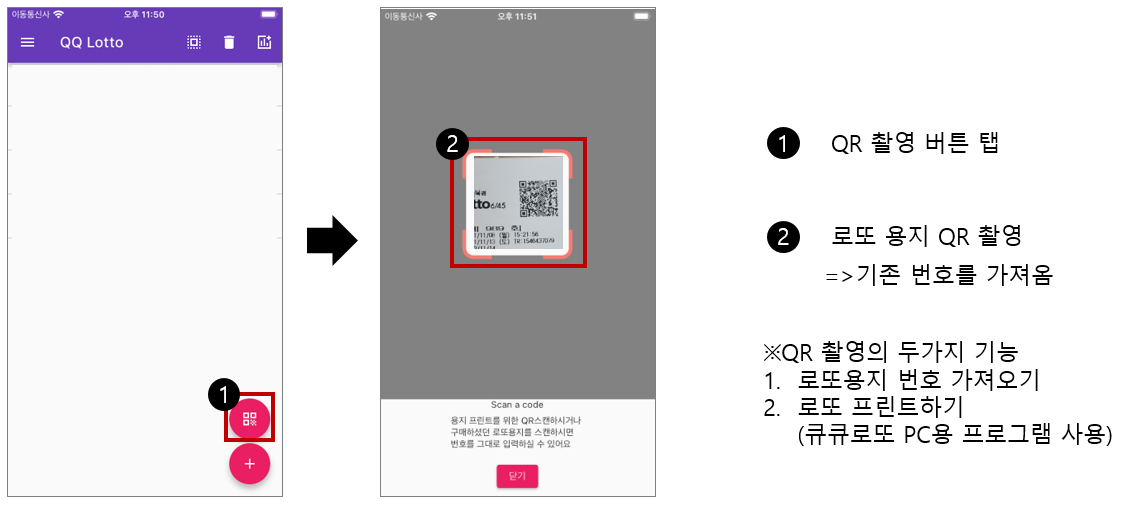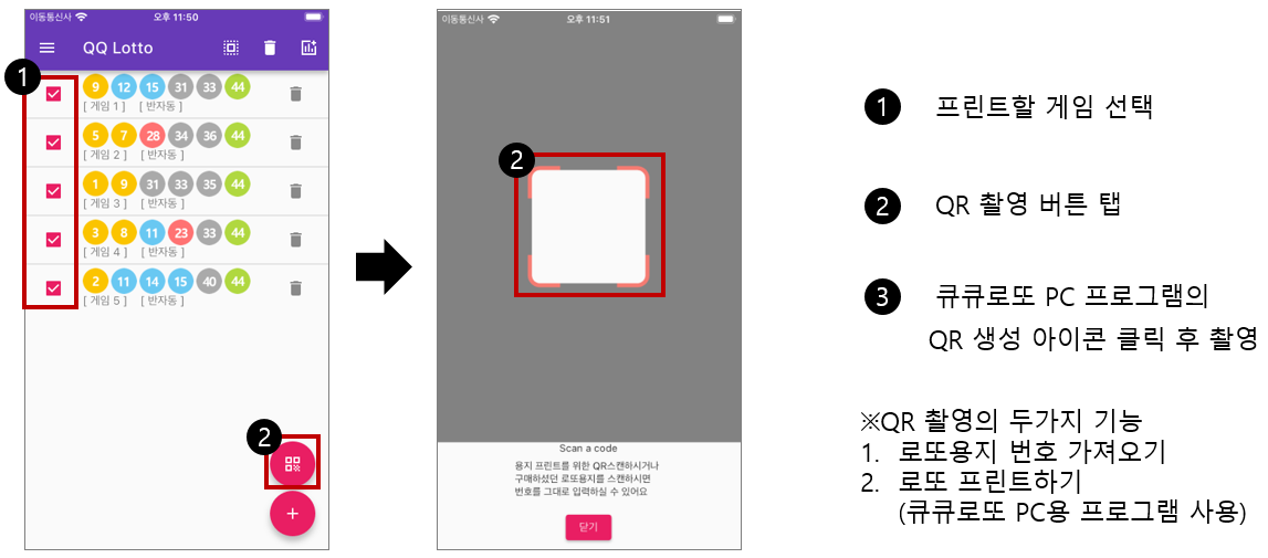 2) 큐큐로또 프린트 PC용 앱 (안드로이드 / 아이폰 동일)